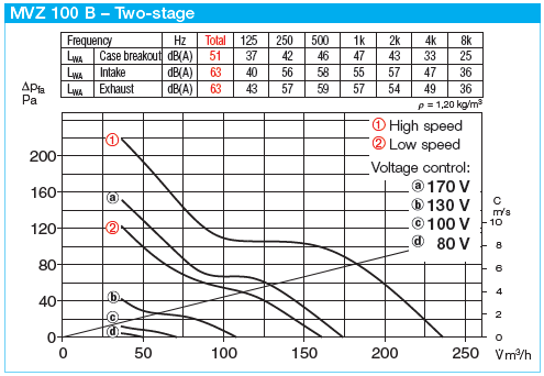 | Légszállítás Szabad Kifúvásnál (m3/h) | |